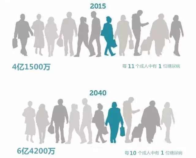 2015年,全球糖尿病患者约达4.15亿人,超过90%为2型糖尿病。这个数字预计在2040年将增长至6.42亿。