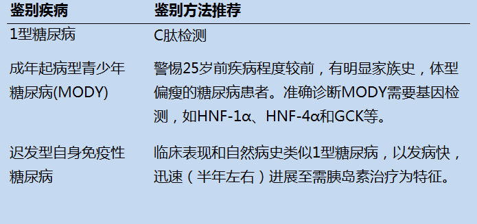 (表2. 2型糖尿病的鉴别诊断,翻译自:Lancet)